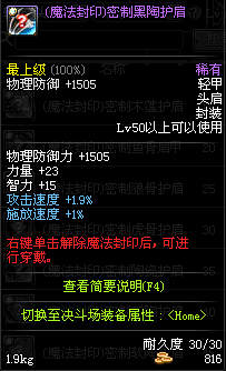 | 50 | (魔法封印)密制黑陶护肩 | *Lv50~56普通地下城怪物掉落 *完成[沉睡的巨龙]任务 *使用Lv50~56怪物掉落的设计图进行制作 |