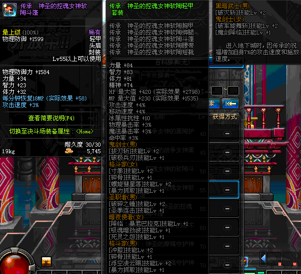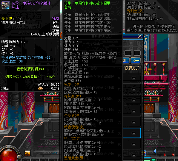| 鬼剑士 | 神枪手 | 格斗家 | 魔法师 | 圣职者 | 暗夜使者 | 布甲 | 皮甲 | 重甲 | 轻甲 | 板甲 | 饰品 |