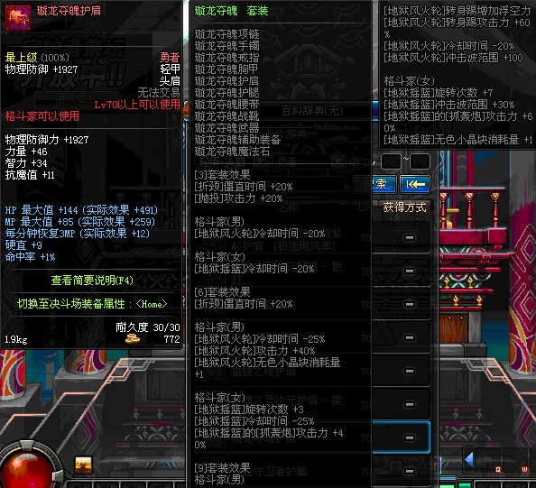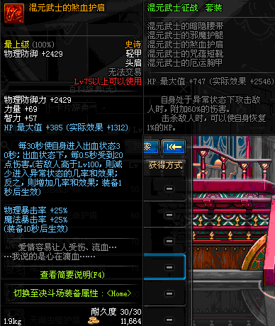 | 75 | 混元武士的煞血护肩 | *Lv74~81深渊地下城怪物掉落 | 混元武士征战 套装 | |