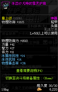 | 50 | 冰齿沙凡特的雪灵护肩 | *冰齿沙凡特 掉落(黑色雪山) *在NPC敏泰的物品店购买(阿拉德陨石×174) |