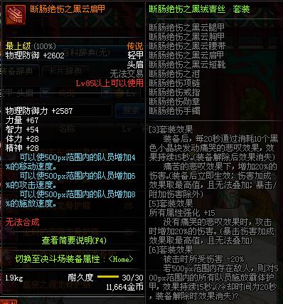 | 85 | 断肠绝伤之黑云肩甲 | *昨日之巴斯顿 掉落 (在远古地下城里出没。) *从NPC鲁特的物品店出售的[断肠绝伤防具礼盒]中获得 |