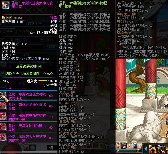 | 60 | 圣物 :荣耀的控魂女神的软陶斗篷 | *Lv58~66普通地下城怪物掉落 |
