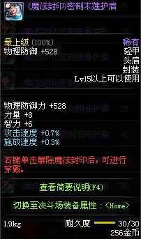 | 15 | (魔法封印)密制木莲护肩 | *Lv13~21普通地下城怪物掉落 *完成[[魔法封印防具]天才武道家的试炼(1/3)]任务 *使用Lv13~21怪物掉落的设计图进行制作 |