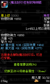 | 45 | (魔法封印)密制软陶绑腿 | *Lv45~51普通地下城怪物掉落 *完成[被洗脑的信徒]任务 *使用Lv45~51怪物掉落的设计图进行制作 |