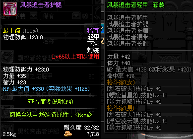 | 65 | 圣物 :摩羯守护神的橡木绑腿 | *Lv65~71普通地下城怪物掉落 |