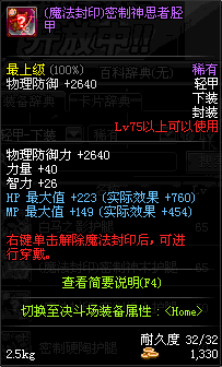 | 35 | (魔法封印)密制陶瓷绑腿 | *Lv34~41普通地下城怪物掉落 |