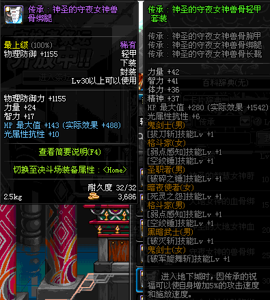 | 30 | 圣物 :荣耀的守夜女神的兽骨绑腿 | *Lv29~36普通地下城怪物掉落 |