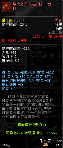 | 70 | 裂魂之异次元护腿 - 散打 | |||
