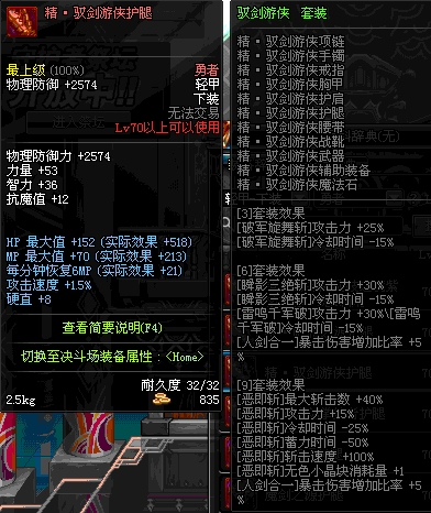 | 70 | 裂魂之异次元绑腿 - 驭剑士 | |||