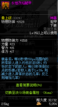 | 35 | 永恒烈焰腿甲 | *爆炎剑.巴塔路西斯&爆炎师.巴塔路西斯&爆炎拳.巴塔路西斯 掉落(远古墓穴深处) *在NPC克伦特的物品店购买(阿拉德陨石×92) |