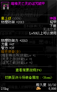 | 辅助装备: | 全职业 鬼剑士 女鬼剑 女格斗 男格斗 神枪手 女枪手 魔法师 男法师 圣职者 暗夜使者 守护者 |