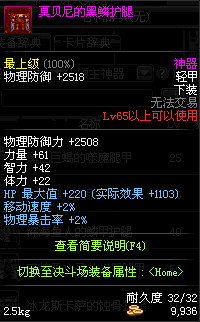 | 45 | 圣物 :战争女神的黑陶黑陶绑腿 | *Lv45~51普通地下城怪物掉落 |