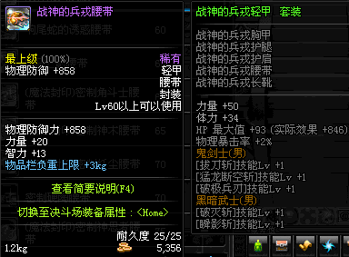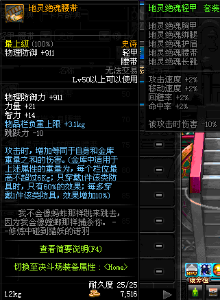 | 45 | 圣物 :战争女神的黑陶黑陶腰带 | *Lv45~51普通地下城怪物掉落 |