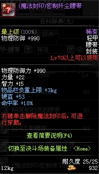 | 35 | (魔法封印)密制陶瓷腰带 | *Lv34~41普通地下城怪物掉落 |
