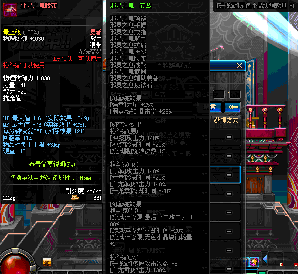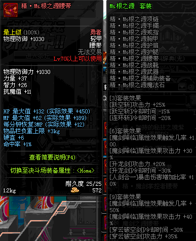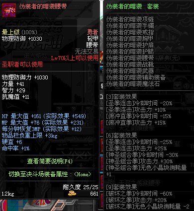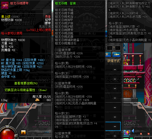 | 75 | 混元武士的暗隐腰带 | *Lv74~81深渊地下城怪物掉落 | 混元武士征战 套装 | |