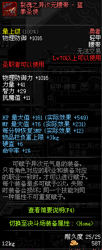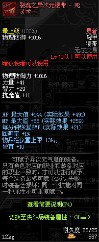 | 70 | 裂魂之异次元腰带 - 剑魂 | |||
