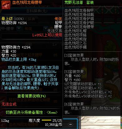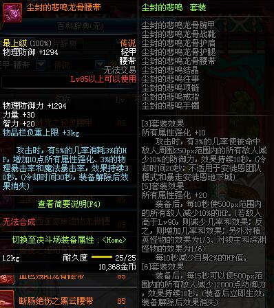 | 85 | 血色残阳龙骨腰带 | *昨日之巴斯顿 掉落 (在远古地下城里出没。) *从NPC鲁特的物品店出售的[血色残阳防具礼盒]中获得 |