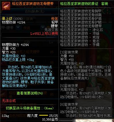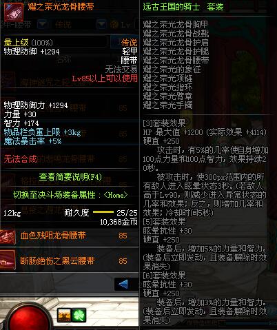 | 85 | 耀之荣光龙骨腰带 | *昨日之巴斯顿 掉落 (在远古地下城里出没。) *从NPC鲁特的物品店出售的[耀之荣光防具礼盒]中获得 |