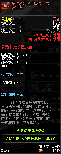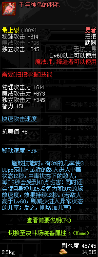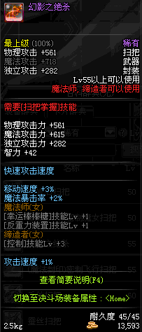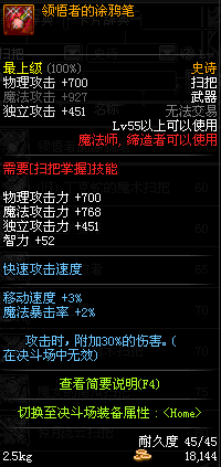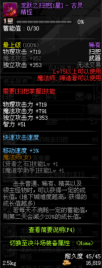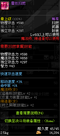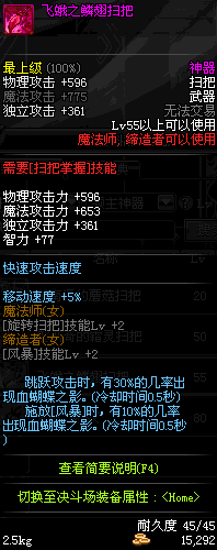 | 45 | 圣物 : 冥火精灵之强风扫把 | *Lv45~51普通地下城怪物掉落 |