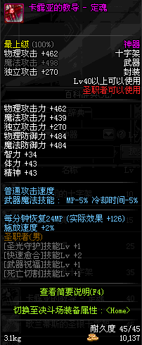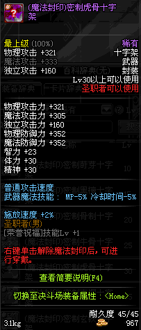 | 辅助装备: | 全职业 鬼剑士 女鬼剑 女格斗 男格斗 神枪手 女枪手 魔法师 男法师 圣职者 暗夜使者 守护者 |