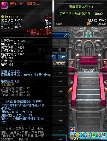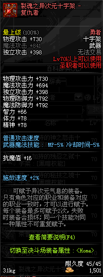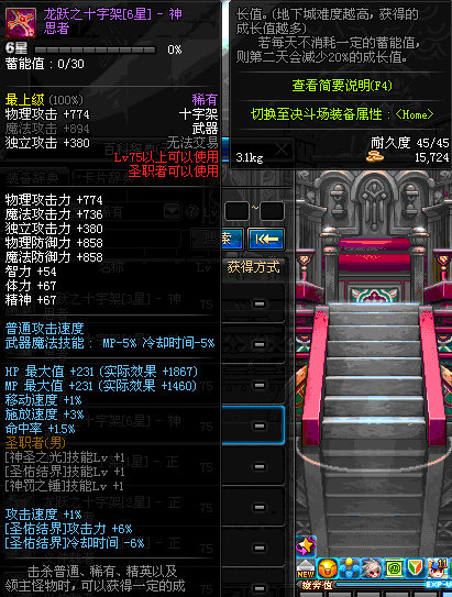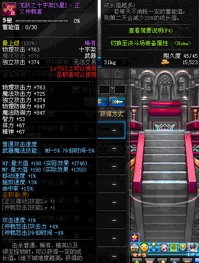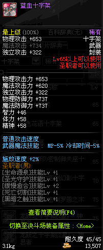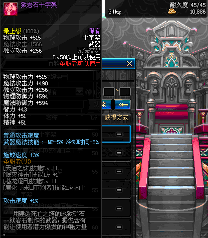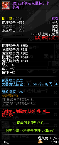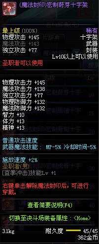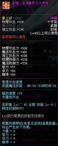 | 45 | 圣物 : 玄月精灵之十字架 | *Lv45~51普通地下城怪物掉落 |
