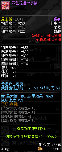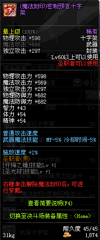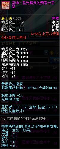 | 65 | 圣物 : 圣光精灵的预言十字架 | *Lv65~71普通地下城怪物掉落 |