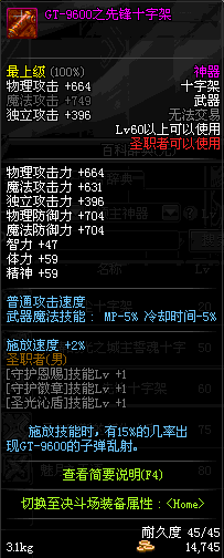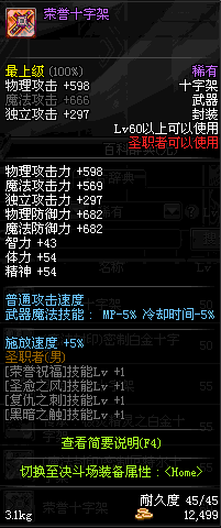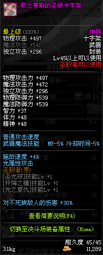 | 45 | 歌兰蒂斯的圣银十字架 | *Lv45~51普通地下城怪物掉落 *在加百利的神秘商店购买 |