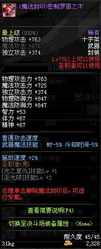 | 15 | (魔法封印)密制黑檀十字架 | *Lv13~21普通地下城怪物掉落 *完成[专职贺礼]任务 |