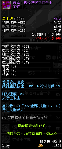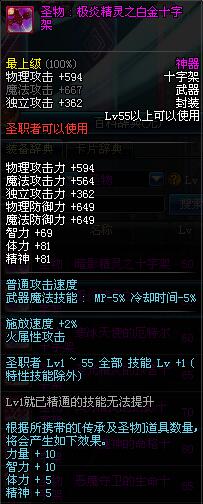 | 55 | 圣物 : 极炎精灵之白金十字架 | *Lv53~61普通地下城怪物掉落 |