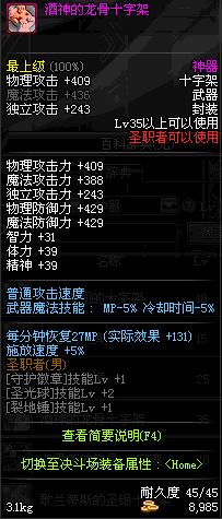 | 35 | 酒神的龙骨十字架 | *Lv34~41普通地下城怪物掉落 *在加百利的神秘商店购买 |