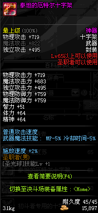 | 65 | 泰坦的厄特尔十字架 | *Lv65~71普通地下城怪物掉落 *在加百利的神秘商店购买 |