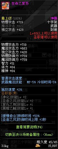 | 65 | 生命之复苏 | *Lv65~71普通地下城怪物掉落 *在加百利的神秘商店购买 |