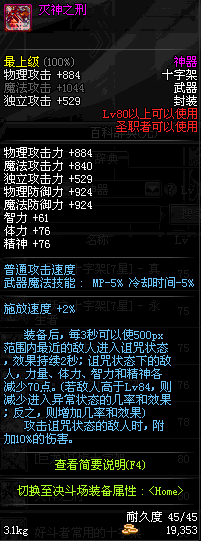 | 80 | 灭神之刑 | *Lv80~86普通地下城怪物掉落 *在加百利的神秘商店购买 |
