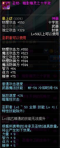 | 50 | 圣物 : 暗影精灵之十字架 | *Lv50~56普通地下城怪物掉落 |