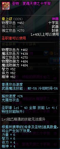 | 40 | 圣物 : 复魂天使之十字架 | *Lv39~46普通地下城怪物掉落 |