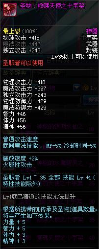 | 35 | 圣物 : 救赎天使之十字架 | *Lv34~41普通地下城怪物掉落 |