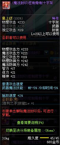 | 45 | (魔法封印)密制银制十字架 | *Lv45~51普通地下城怪物掉落 *完成[罗斯特的破绽]任务 *使用Lv45~51怪物掉落的设计图进行制作 |