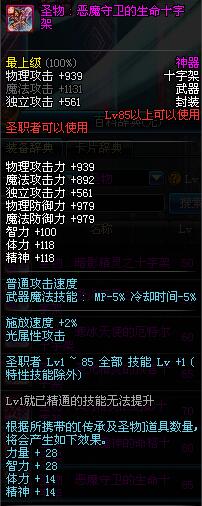 | 85 | 圣物 : 恶魔守卫的生命十字架 | *Lv85~91普通地下城怪物掉落 | ||