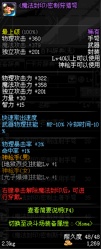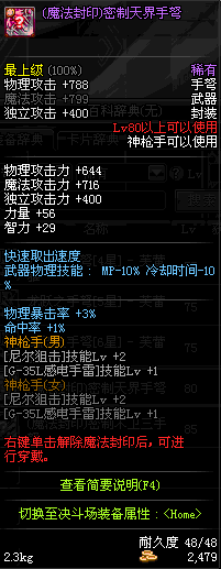 | 80 | (魔法封印)密制天界手弩 | *Lv80~86普通地下城怪物掉落 |