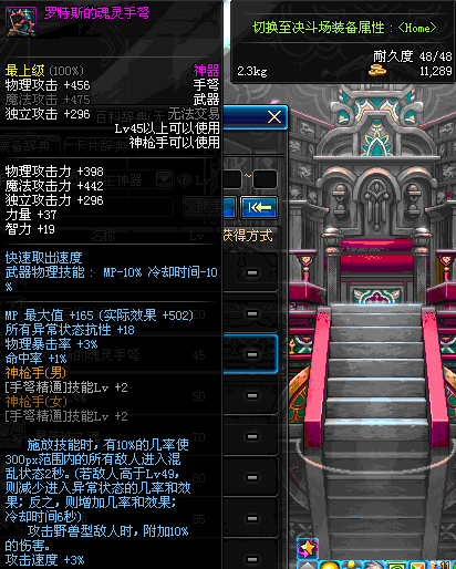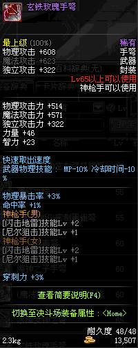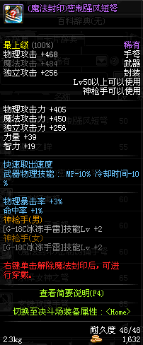 | 50 | 幽灵手弩 | *Lv50~56普通地下城怪物掉落 *在加百利的神秘商店购买 |