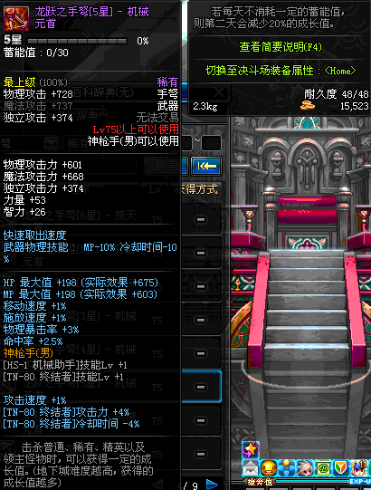 | 75 | 龙跃之手弩[6星] – 机械之灵 | *完成二次觉醒任务后可以从NPC小铁柱处获得此道具。 | ||