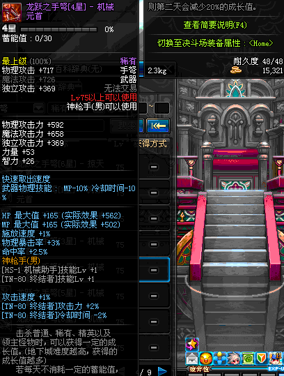 | 75 | 龙跃之手弩[4星] – 机械之灵 | *完成二次觉醒任务后可以从NPC小铁柱处获得此道具。 | ||