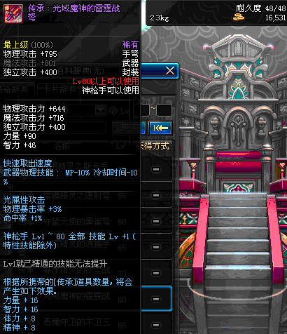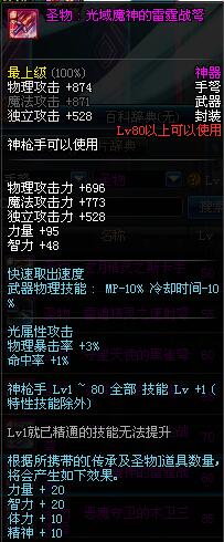 | 80 | 圣物 : 光域魔神的雷霆战弩 | *Lv80~86普通地下城怪物掉落 | ||