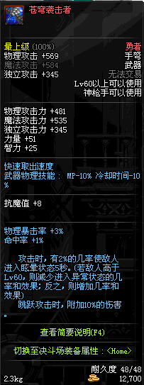 | 辅助装备: | 全职业 鬼剑士 女鬼剑 女格斗 男格斗 神枪手 女枪手 魔法师 男法师 圣职者 暗夜使者 守护者 |