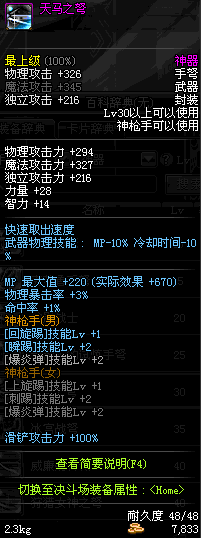 | 30 | 天马之弩 | *Lv29~36普通地下城怪物掉落 *在加百利的神秘商店购买 |