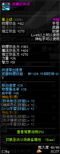 | 35 | 冰宫战弩 | *Lv34~41普通地下城怪物掉落 *在加百利的神秘商店购买 |