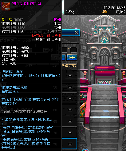 | 70 | 雷狼之暴弩 | *Lv70~76普通地下城怪物掉落 *在加百利的神秘商店购买 |