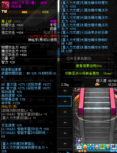| 76 | 真·野战队长的奇袭手弩 | *设计图(70LV以上普通地下城 登场的NPC加百利 出售) *野战队长的奇袭手弩 → 用远古神器装备进化书升级(NPC船长鲁特 出售) |