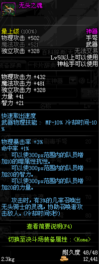 | 50 | 无头之魂 | *无头骑士 掉落(暮色之城) *在NPC敏泰的物品店购买(阿拉德陨石×285) |