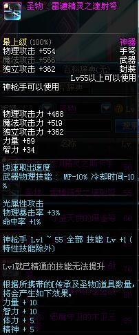 | 55 | 圣物 : 雷谴精灵之速射弩 | *Lv53~61普通地下城怪物掉落 |